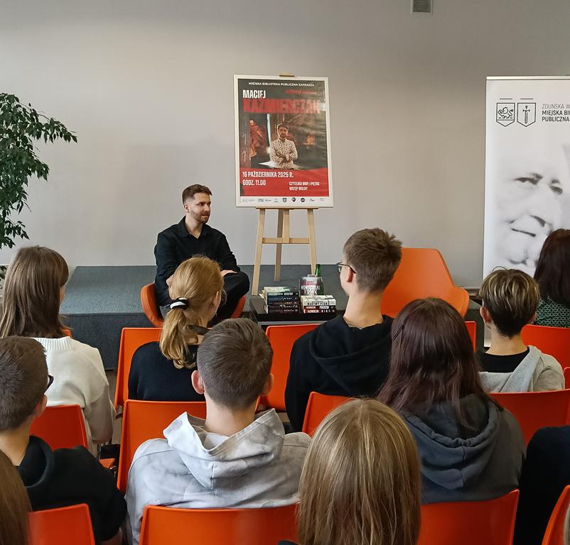 16 października 2025 roku w Miejskiej Bibliotece Publicznej w Zduńskiej Woli odbyło się spotkanie autorskie z Maciejem Kaźmierczakiem – pisarzem, autorem kryminałów, thrillerów, horrorów