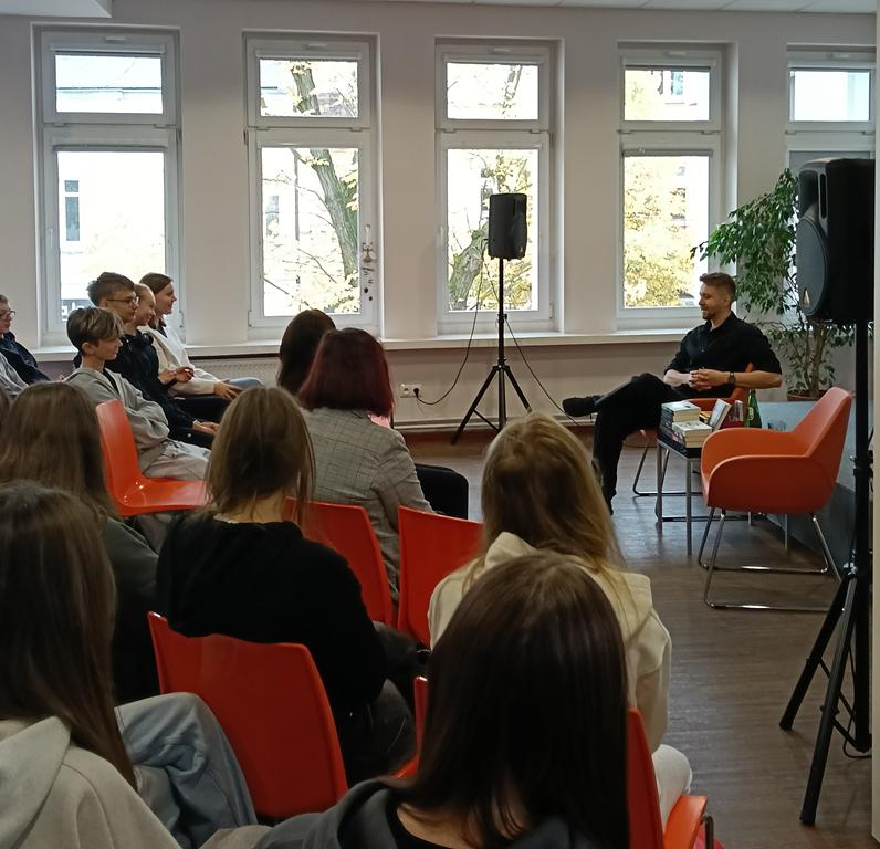 Autor, którego nazwisko znalazło się na liście 30 najpoczytniejszych pisarzy w Polsce według raportu Biblioteki Narodowej z 2022 roku, zgromadził w bibliotece liczne grono uczniów szkoły średniej – młodych pasjonatów literatury gatunkowej.
