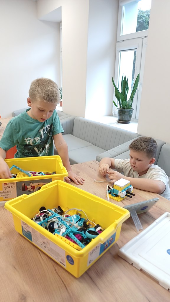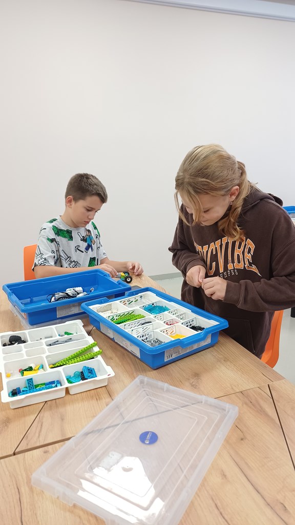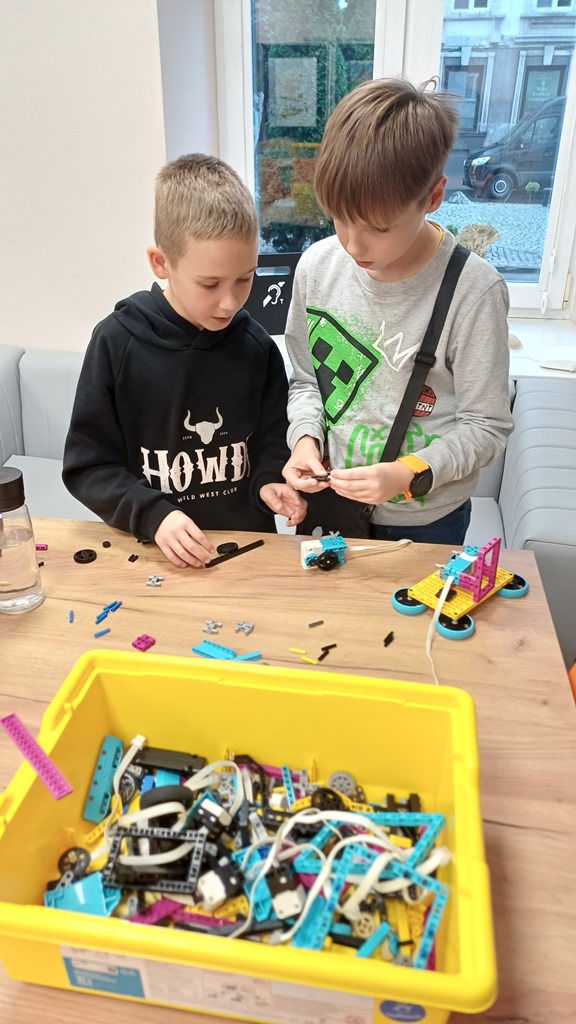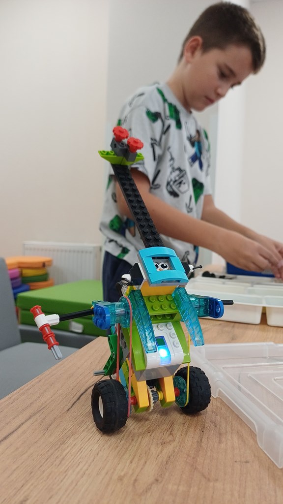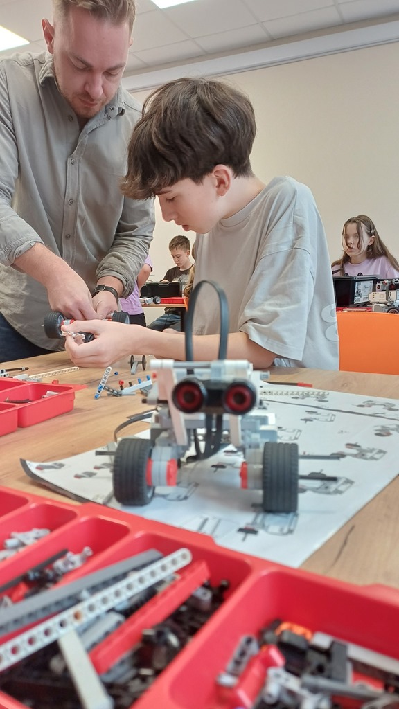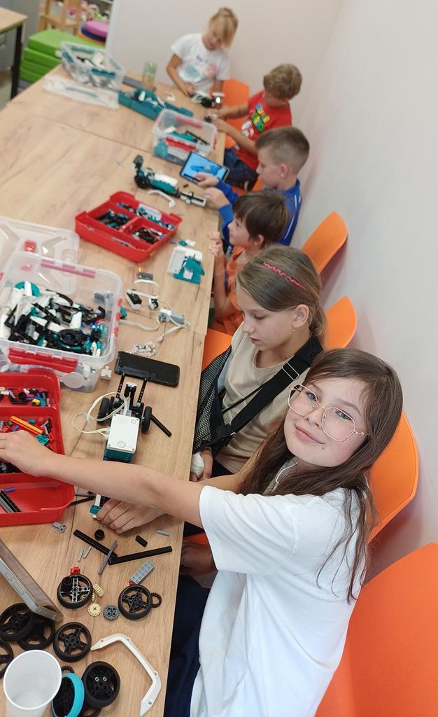 Młodzi konstruktorzy mieli okazję poznać podstawy budowania i programowania robotów, a także sprawdzić w praktyce, jak powstają różne mechanizmy. W trakcie spotkań powstawały zarówno proste konstrukcje – wesołe, kolorowe zwierzątka – jak i bardziej zaawansowane modele, takie jak pojazdy wyścigowe. Najwięcej emocji wzbudzał moment, gdy stworzone roboty ożywały dzięki zaprogramowanym wcześniej poleceniom.