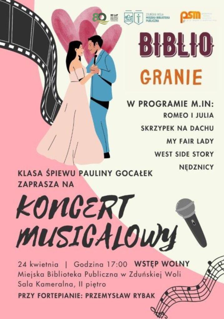 Zapraszamy na kolejną odsłonę „Bibliogrania” – wyjątkowy koncert musicalowy – w wykonaniu klasy śpiewu Pauliny Gocałek Państwowej Szkoł...